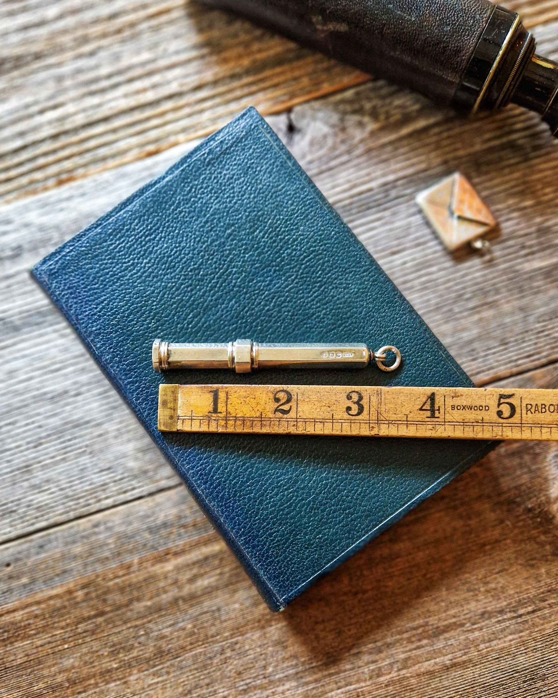 For the writer … a distinctive sterling silver pencil holder by William Vale & Sons, hallmarked for Birmingham 1912. Measuring a compact 3 inches, it retains a working slide-action mechanism and its original loop for attaching to a gentleman’s watch chain. It was designed to take threaded pencil inserts (not included here) which could be retracted when not in use. Pencil holders like this reflected the fashion in the early 1900s for making everyday tools into refined personal accessories. As an intriguing example of Edwardian design, it would make an ideal gift for a writer, collector, or anyone who appreciates old silver.
