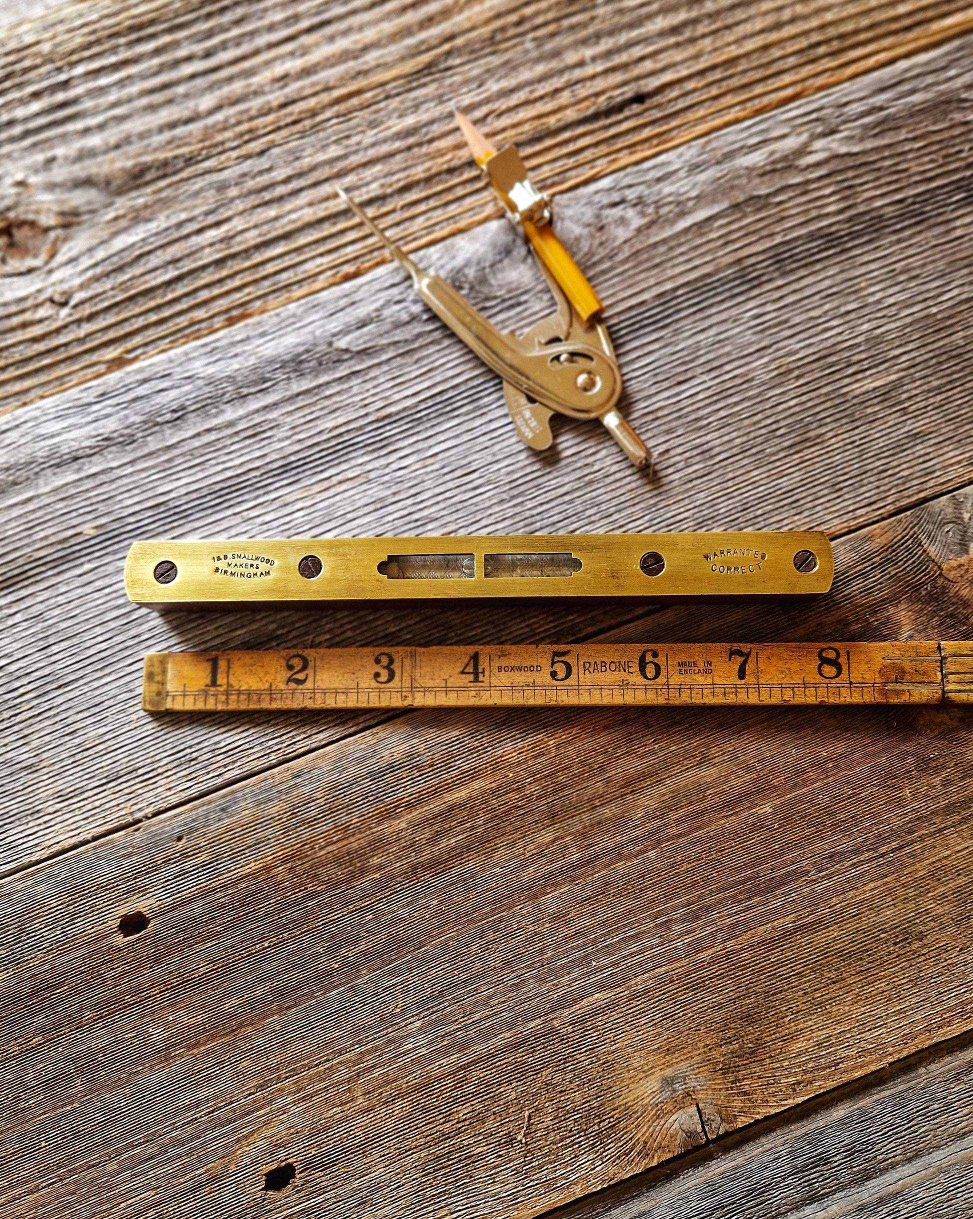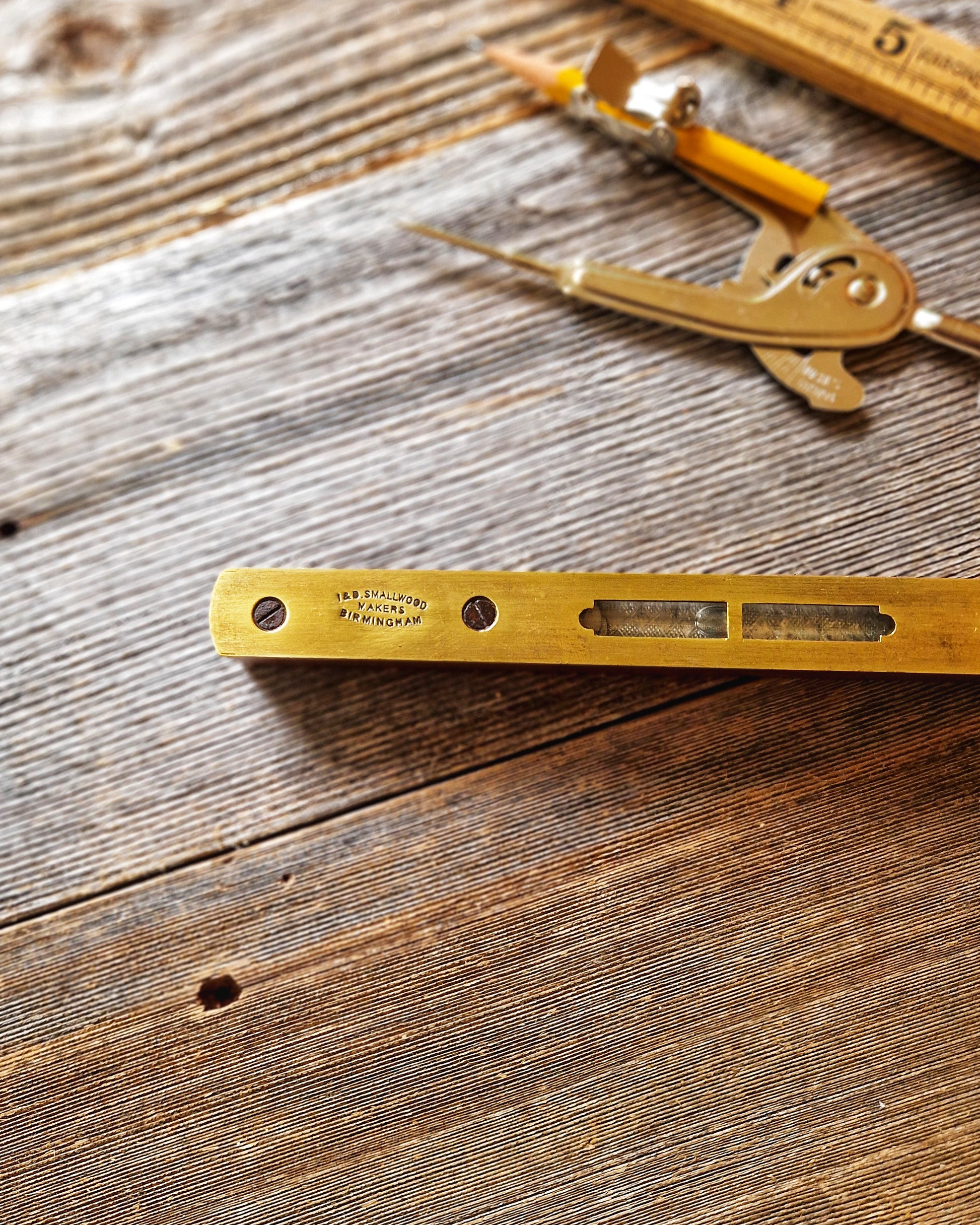 Founded by brothers Isaac and David, the firm of I & D Smallwood produced precision measuring tools from their Leopold Street works in Birmingham for more than a century before being acquired by G. Gibson & Co. in 1999. In addition to spirit levels, the firm supplied boxwood rules, slide rules, and other trade instruments to merchants and government contractors throughout Britain and the Commonwealth. Compared with large-scale makers like Rabone and Marples, Smallwood tools are less often seen today, reflecting the firm’s smaller production and more limited distribution.