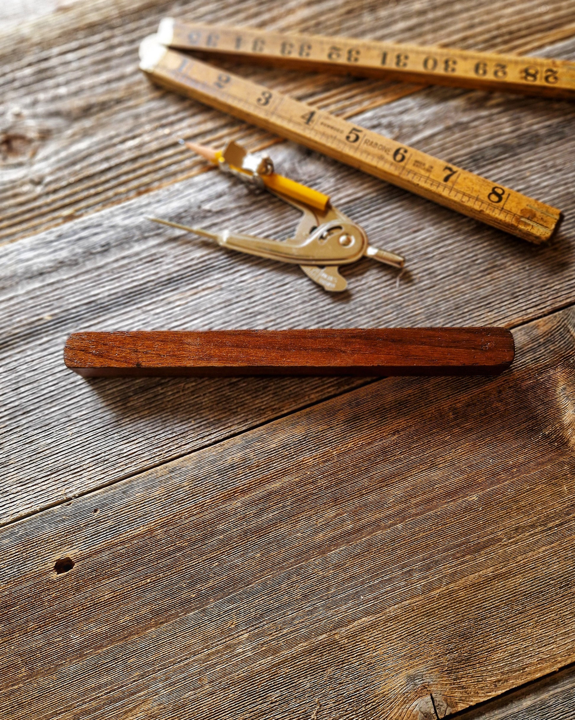 For the artisan … an attractive 8-inch spirit level circa 1880-1910, by the firm of I & D Smallwood of Birmingham. Compact and finely balanced, it pairs dense hardwood (likely rosewood) with bright brass fittings—an elegant, well-made tool equally at home on the craftsman’s bench or as an elegant display piece on a gentleman’s desk or side table.