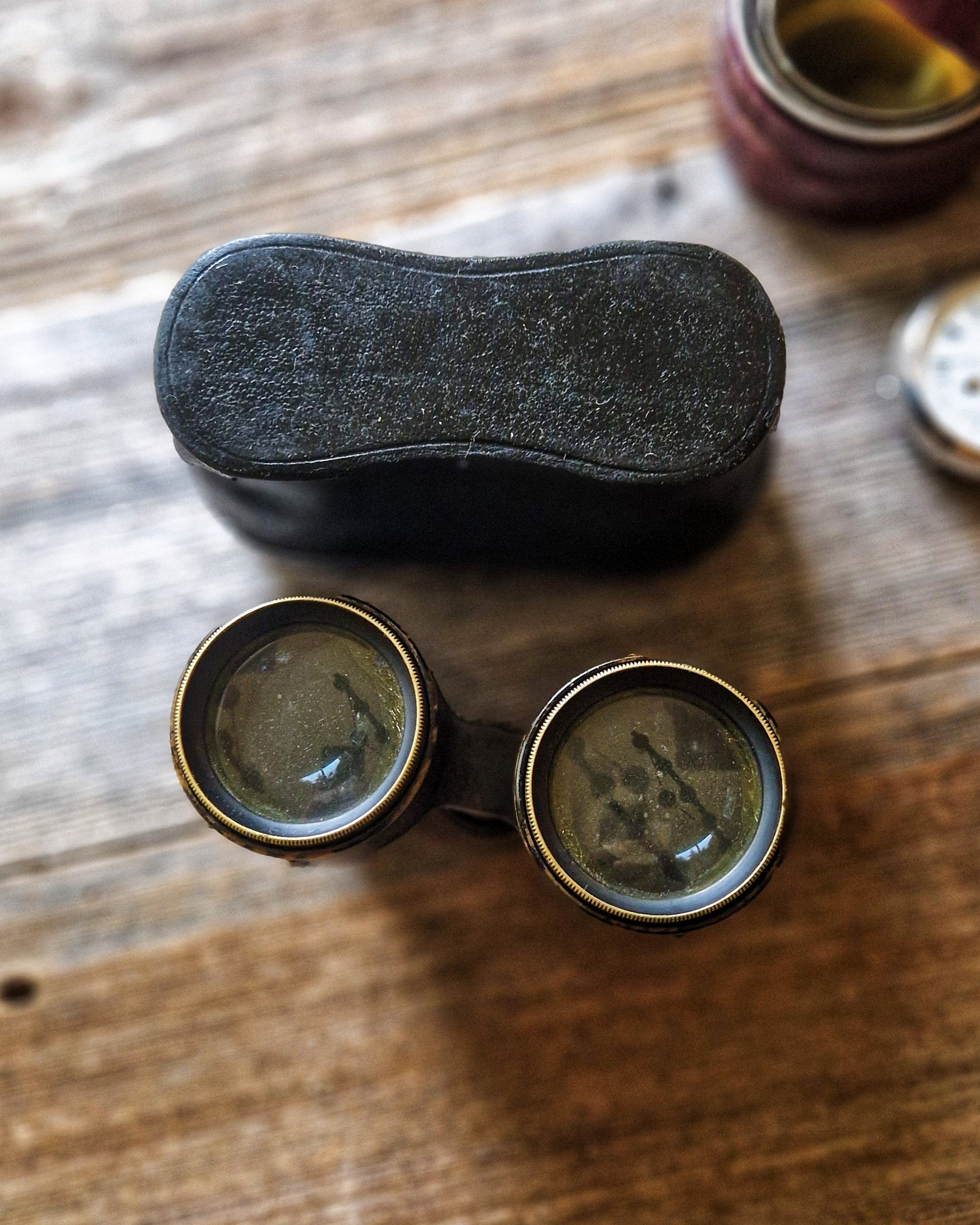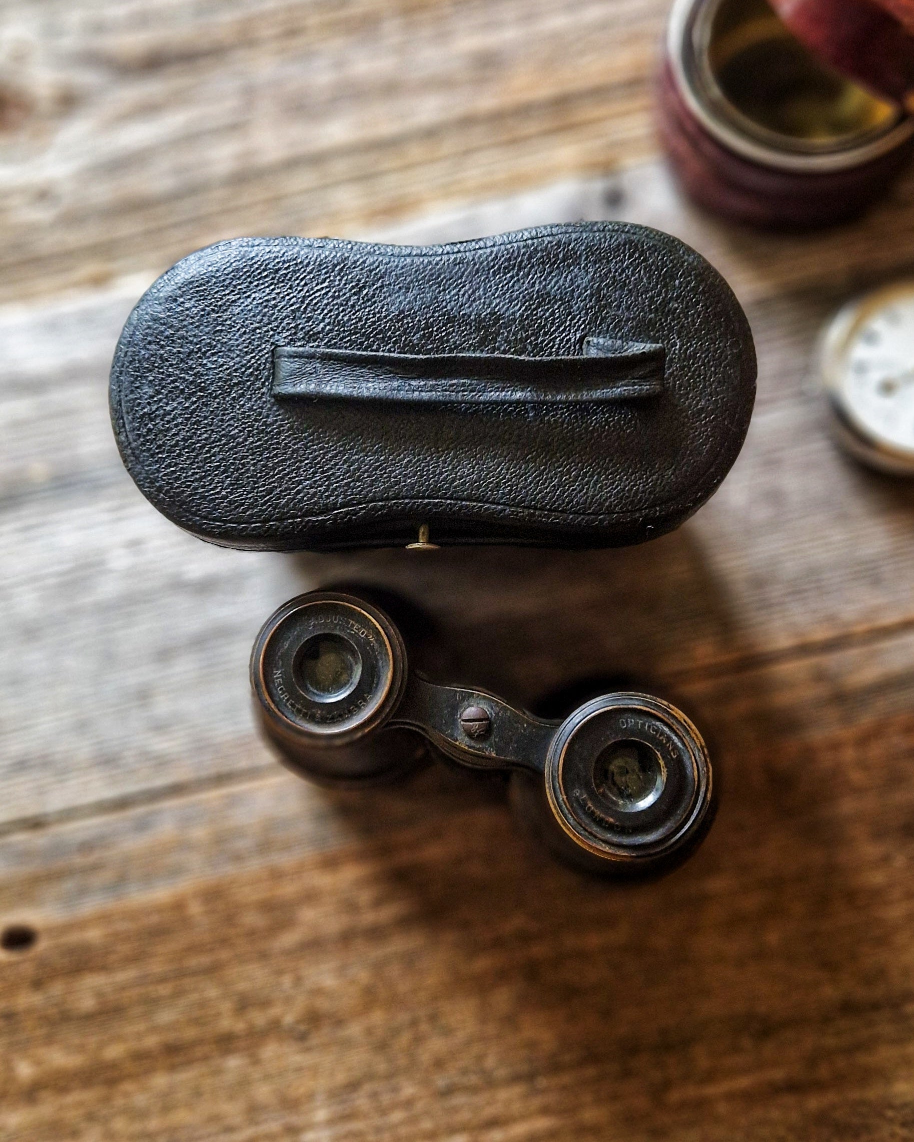 Compact, stylish, and sturdy, field glasses like these were a staple of upper-class travel, sporting events, and theater-going at the turn of the 20th century. Their small footprint made them ideal for a gentleman’s pocket or luggage, and offered practical magnification without bulk — ideal for a day at the races or an evening out in London’s West End.
