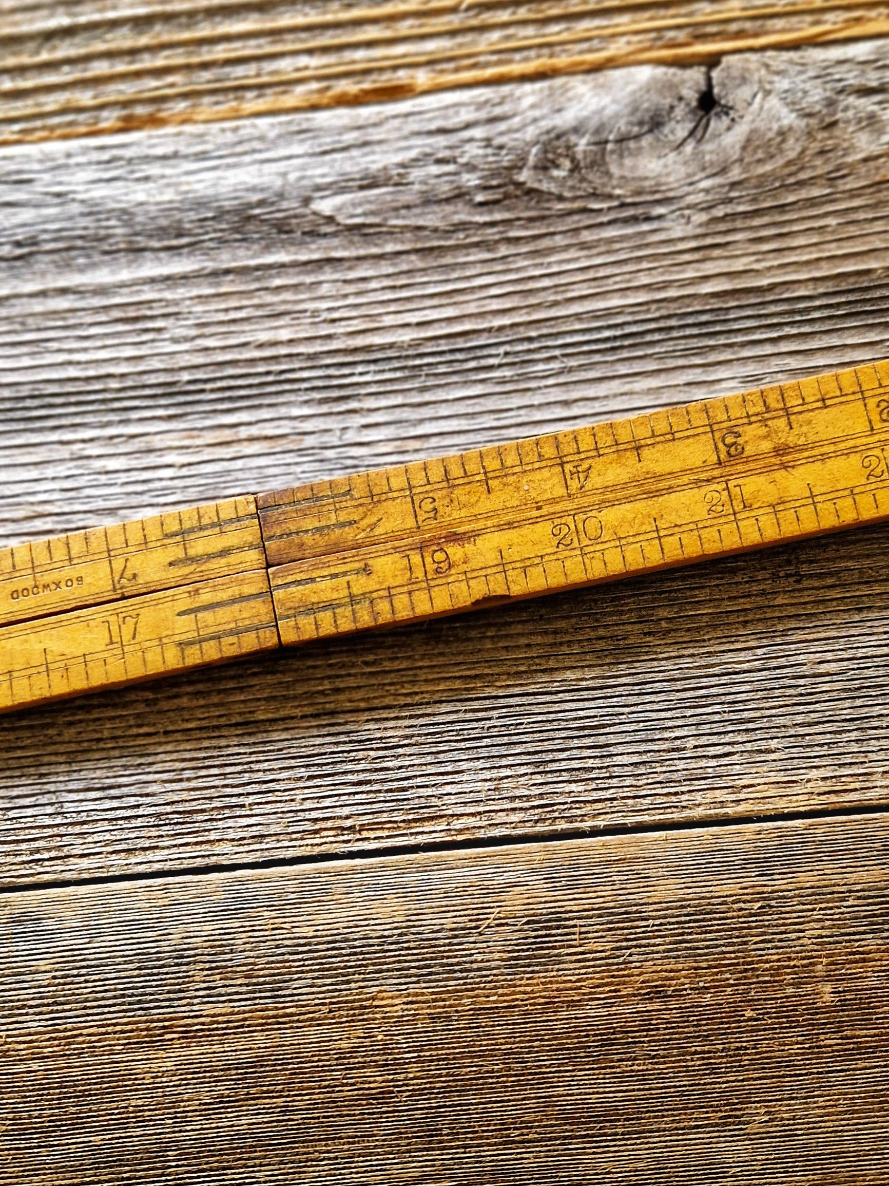 Condition notes: Excellent vintage condition overall. Hinges and end caps show slight tarnish, and there is minor staining to the wood, all consistent with age and use. Tiny chip at 19-1/2” mark (see photo). Ruler folds easily and securely. Marked “BOXWOOD,” “RABONE,” “MADE IN ENGLAND,” AND “NO. 1375.” See photos for more detail and feel free to contact the shop with any questions before purchase.