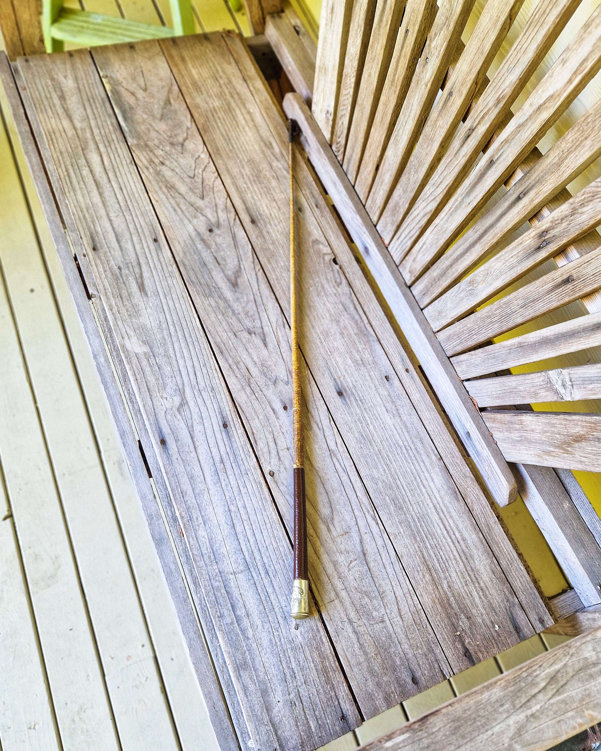 Dimensions: 34” (including loop) x 7/8” (top) x 5/8” (top of cord-wrapped shaft)
