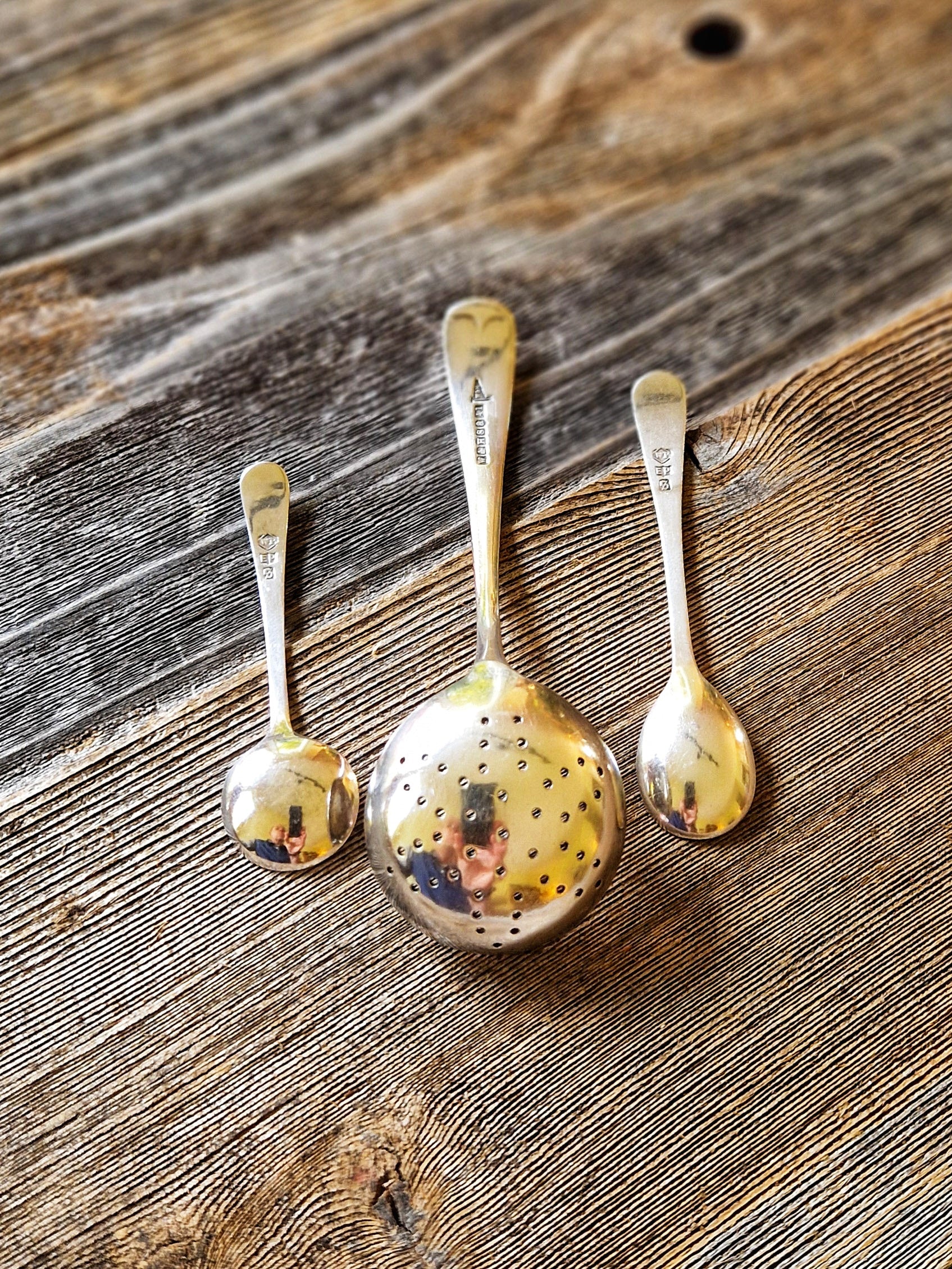Set of 3 English Silver Plate Spoons, Early 1900s