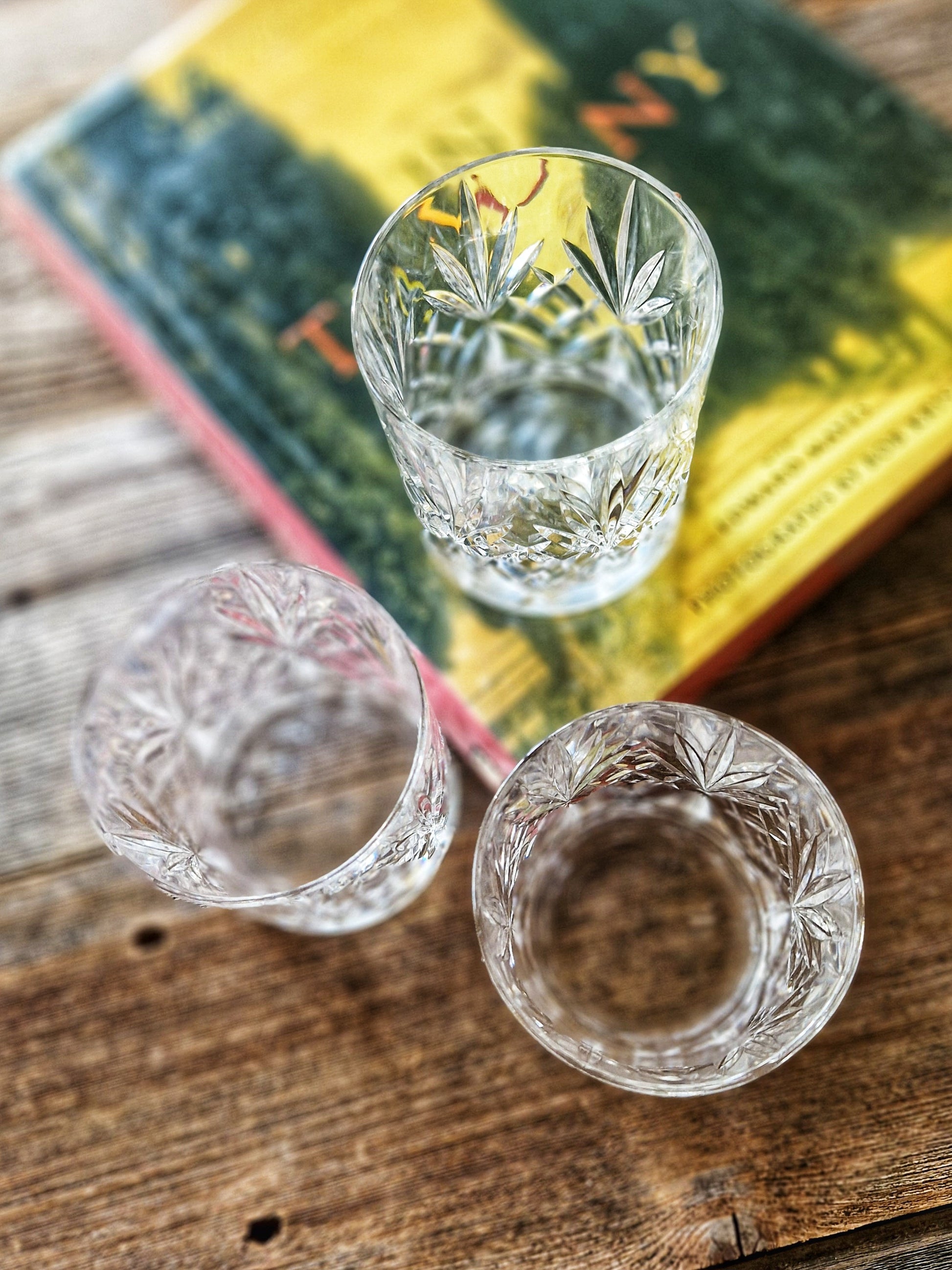 Condition notes: Glasses are all in excellent vintage condition, free of chips, cracks, or clouding. Cut details remain crisp and luminous. Minor signs of wear may be present, consistent with careful use and storage. Hand-washing recommended.